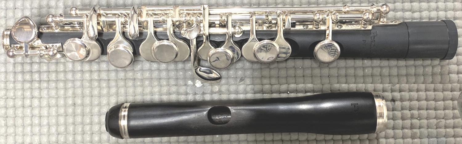 ■管体材質 管体(主管)の材質には主に樹脂(ABS樹脂等)とグラナディラがあります。樹脂製は俗にプラ管と呼ばれるものです。 木(グラナディラ)製は比較的環境の変化に弱く、お手入れで管内の水分がしっかり除去されないと割れたり、直射日光によって日焼けを起こしたりしやすい素材です。 樹脂製は頭部管が白銅か洋銀製であることが多く、価格が安い上に初心者にとっても鳴らしやすく扱いやすいため学校の備品とされることも多くあります。 またパール楽器のピッコロのようにコストを抑えながら木製のピッチ安定感や音色の良さを活かすため頭部管だけ木製にしたりというモデルもございます。