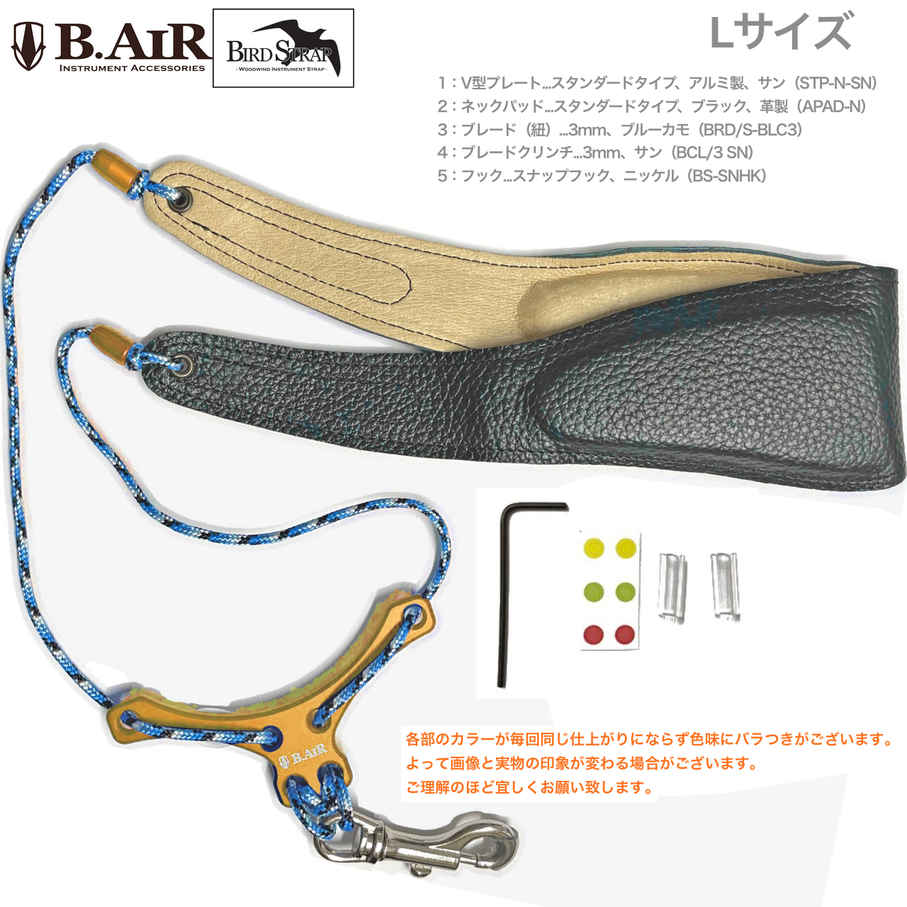 B.AIR ビーエアー バードストラップ スタンダード サン オレンジ ブルーカモ サックス用 Lサイズ 3mm ネックストラップ BIRD STRAP STD saxophone 北海道 沖縄 離島不可standard カスタマイズ カスタムストラップ アルミ製プレート スナップフック 革製 Alto Tenor sax