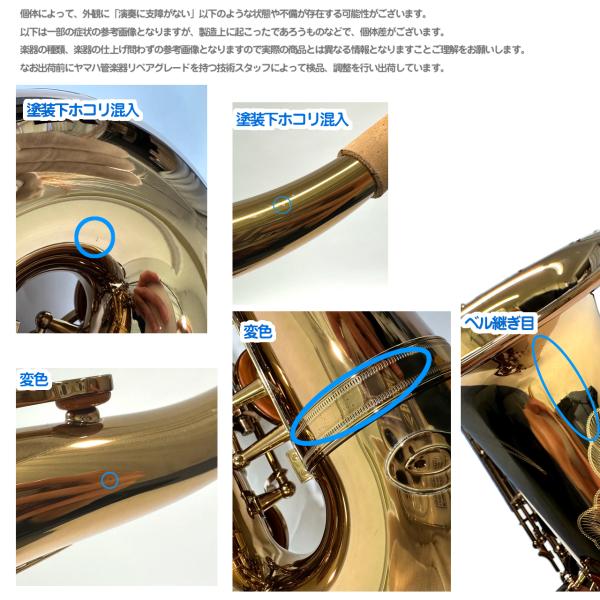 本体の一部分で色味が異なる部分があります。例えばベル部分のカラーが薄くゴールド寄りの色味であるにも関わらず2番管上部ではブラウンが濃いなどです。