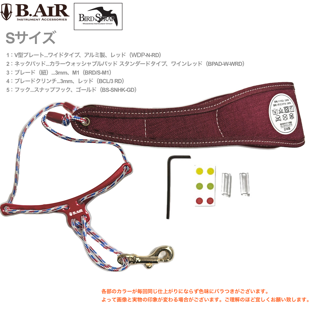 B.AIR ビーエアー バードストラップ カスタマイズ ウォッシャブル ワインレッド 赤 ワイド サックス用 Sサイズ 3mm ネックストラップ BIRD STRAP 北海道 沖縄 離島不可ワイド アルミ製プレート スナップフック 革製 saxophone