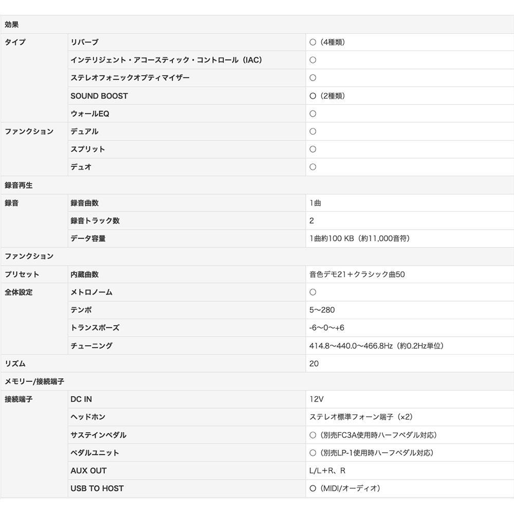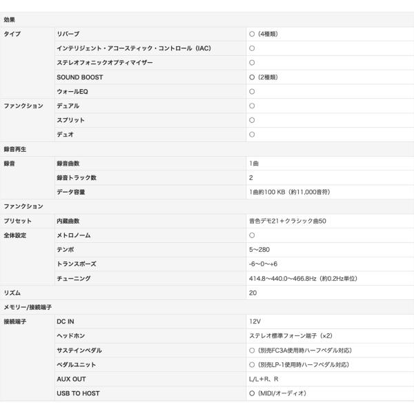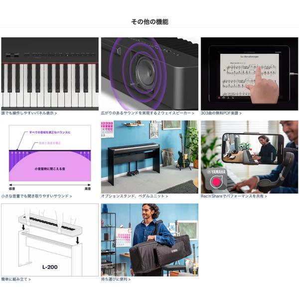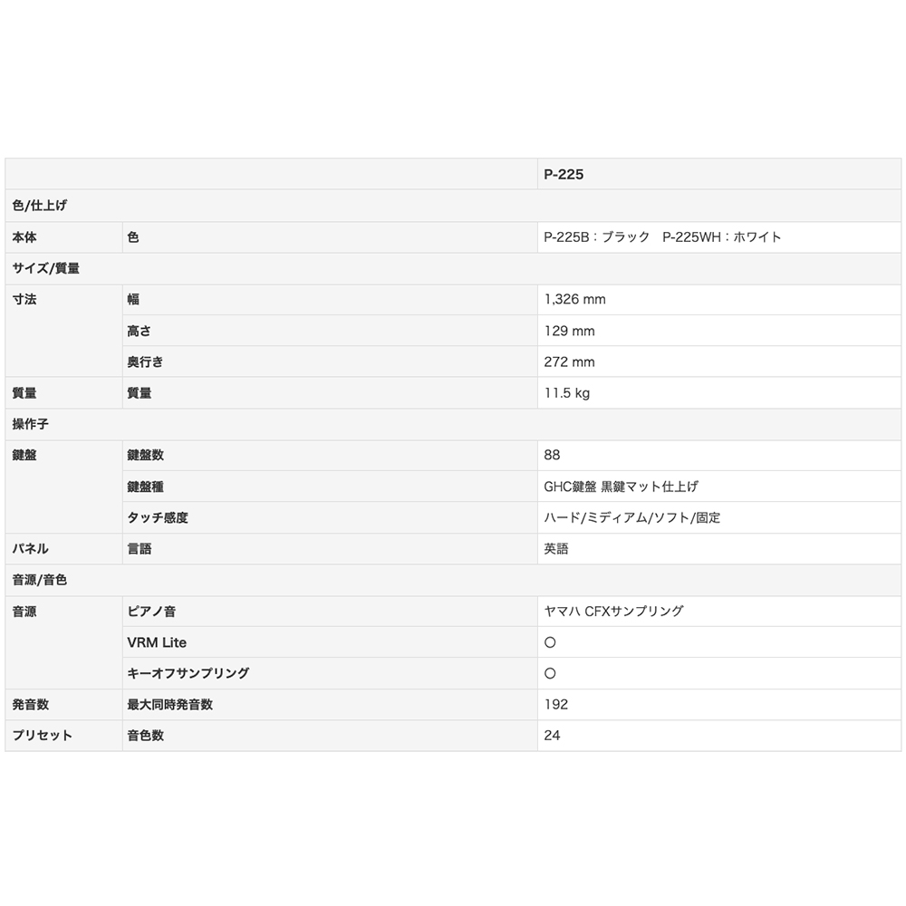 また、P-225はヤマハのコンサートグランドピアノ「CFX」の音色を搭載し、「バーチャル・レゾナンス・モデリング ライト(VRM Lite)」によってグランドピアノの豊かな響きを再現しています。