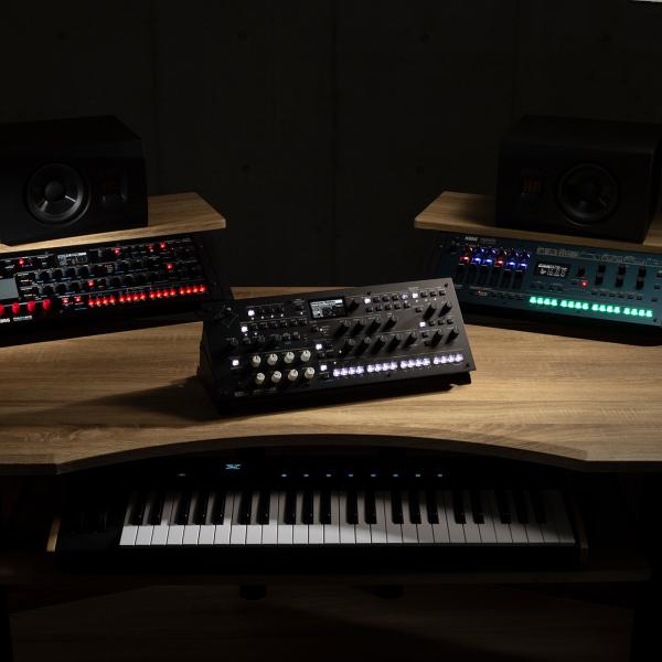 新たな19インチ・ラックマウントの筐体は、鍵盤付きモデルと同様の操作子を持ちながら簡単に持ち運びができ、あらゆるスタジオ、デスクトップの制作システムにもすっきりと収まります。