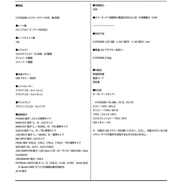 V-STAGE 88 STAGE KEYBOARD ステージ キーボード 88鍵 ピアノ オルガン シンセサイザー