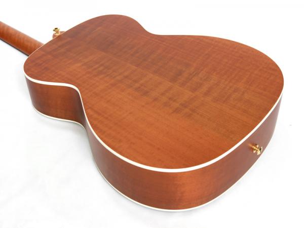 こちらのギターはメイトン社では珍しいピックアップ無しの純アコモデル。天神、ネック、ボディと非常に素晴らしいフィギュアード・クイーンズランド・メイプル材が仕様されており、一見して特別なモデルである事が分かる仕様となっております。