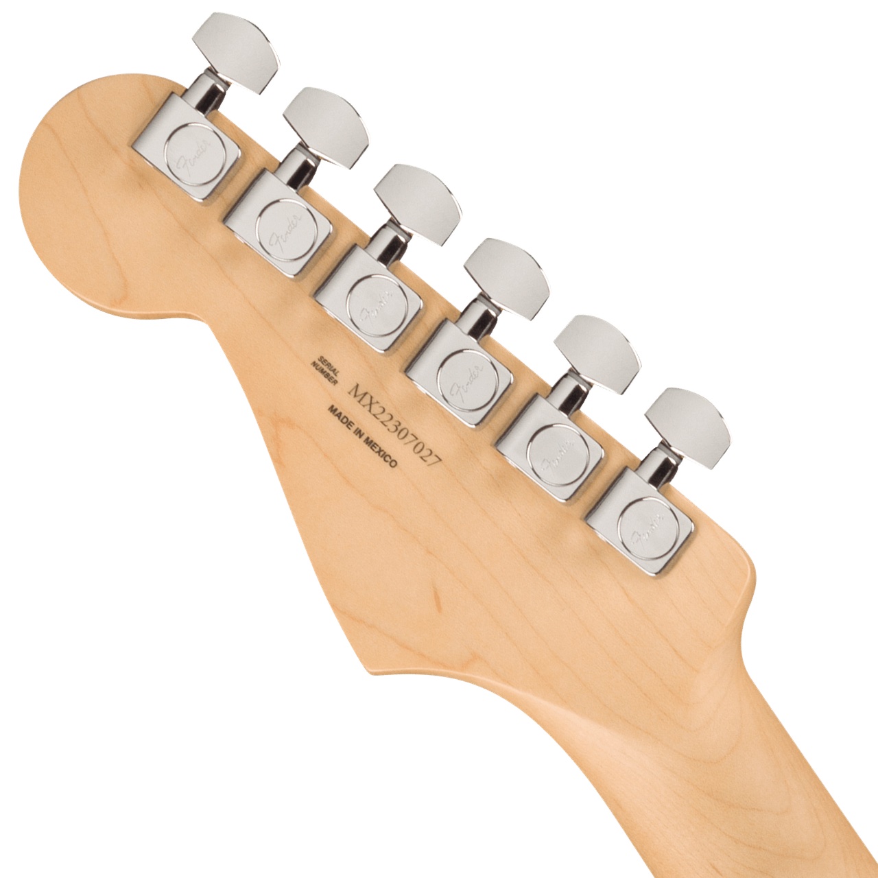 Fenderの伝統的なルックスを踏襲しつつミディアムジャンボフレットを採用したサテンフィニッシュのネック、指板は9.5Rと今時の弾き心地を採用。