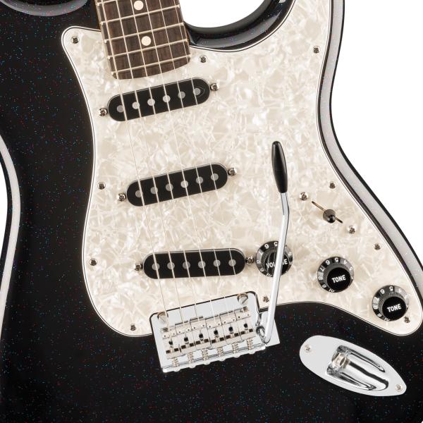 70th Anniversary Player Stratocaster Nebula Noir(ネビューラノワール)は、オーセンティックなフェンダースタイリングとモダンパフォーマンスを併せ持ったギターです。独自の輝きを放つNebula Noirフィニッシュが施された本モデルは、オーディエンスの目を奪う美しさに満ち、あらゆる音楽スタイルにも対応できる万能性を備えています。9.5インチラジアスのローズウッド指板を備えたModern "C"シェイプのメイプルネックが、フェンダーならではのプレイアビリティを提供します。