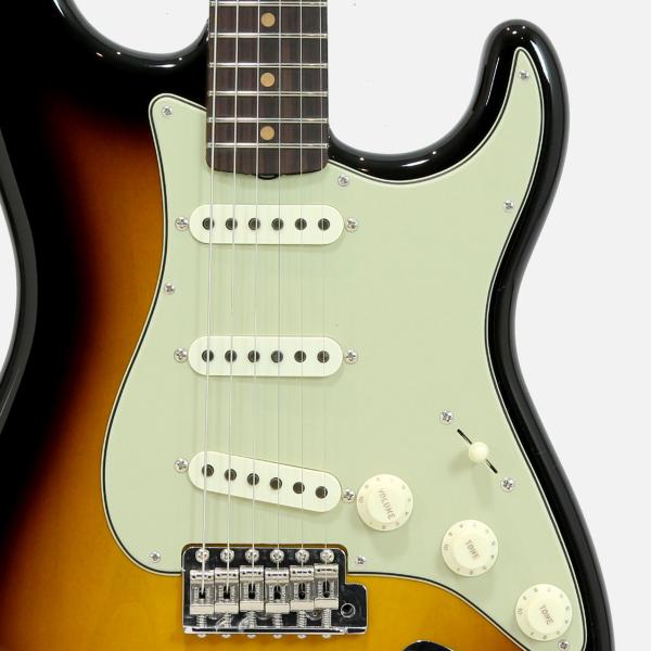 Vintage Custom 1959 Stratocasterは、フラットラミネートのローズウッド指板と、ストラトキャスターの形成期からのレアな特徴を備えています。