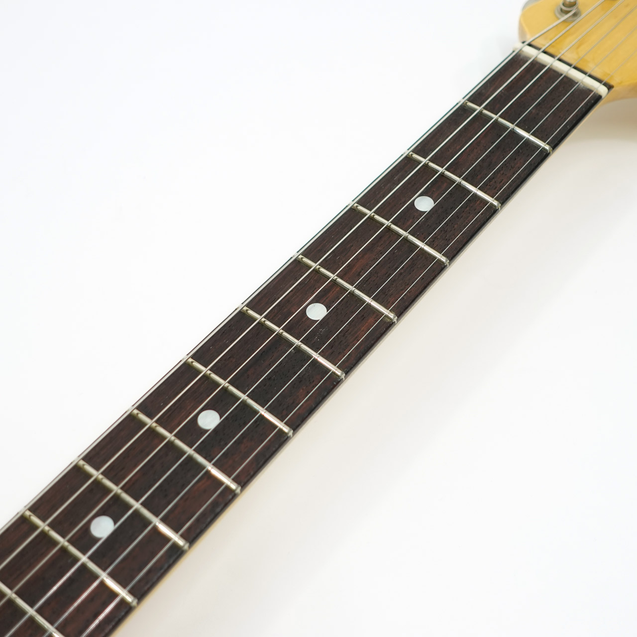 ボディには厳選された2Pアルダーに60年代後期を彷彿させるラージヘッドストックが特徴的な本モデル。クラシックな60SスタイルのOVAL"C"シェイプの厳選されたクウォーターソーンメイプルネックにローズウッドをラウンド貼りで採用しておりますので、扱いやすさとニュアンスの伝えやすさも際立った1本に仕上がっております。
