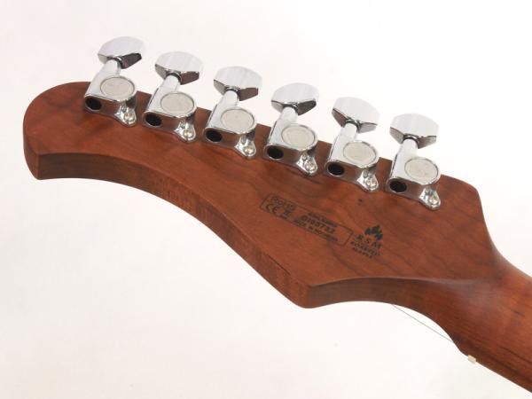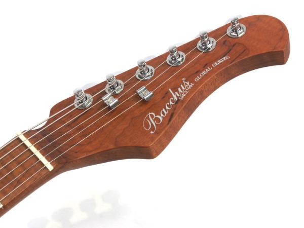 メイプルを高温で加熱処理して材の中の水分や油分を揮発させることにより剛性を高めたローステッドメイプルは安定性だけでなくサウンドにも及び、豊かな生鳴りと経年変化したビンテージのようなこなれたトーンを生み出します。高級機種で使われることの多いこの本格派仕様をリーズナブルな価格帯に落とし込んだBacchusラインアップに新風を巻き起こした意欲作。