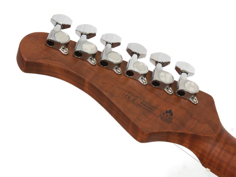 ローステッドメイプルとはメイプルを高温で加熱処理して材の中の水分や油分を揮発させることにより剛性を高めた材。ネックに使用されるとその効果は安定性だけでなくサウンドにも及び、豊かな生鳴りと経年変化したビンテージのようなこなれたトーンを生み出します。