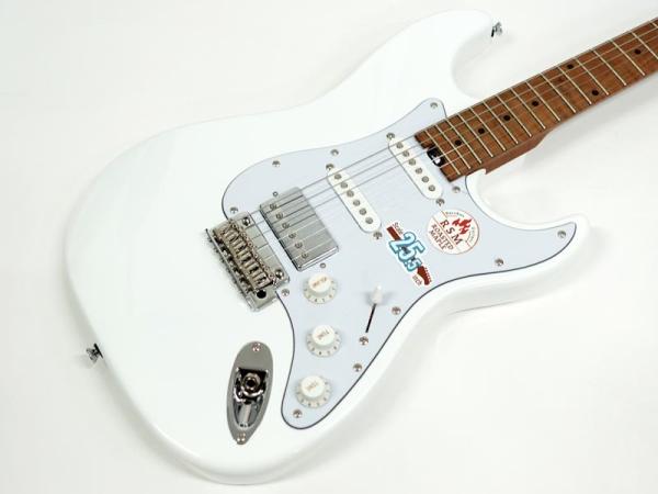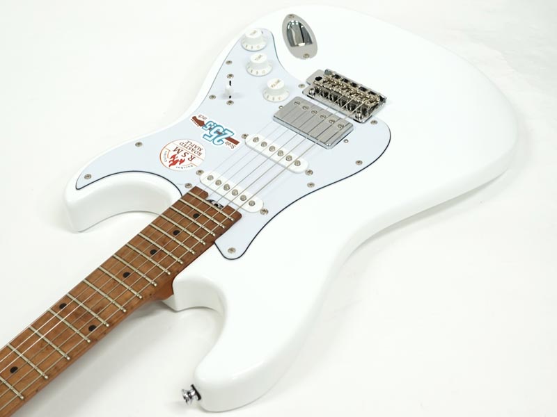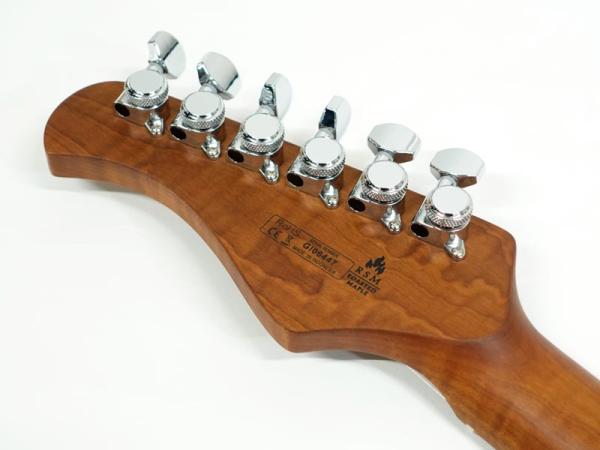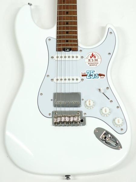 定評のあるローステッドメイプルネック&指板を採用する他、コイルタップ可能なSSHレイアウトピックアップ、TUSQナット、ロックペグ、Wilkinsonシンクロトレモロとこの価格帯とは思えない盤石のスペックを採用し、即戦力で使える実戦機と仕上がっています。