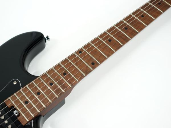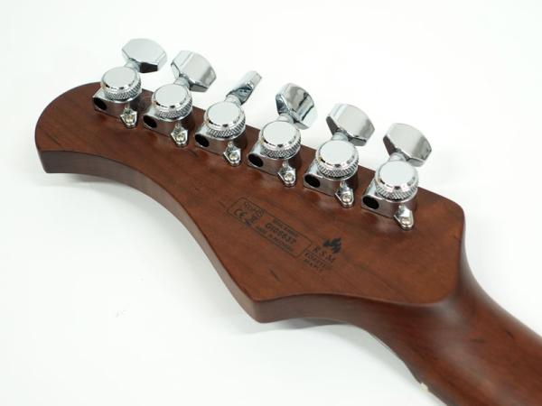 定評のあるローステッドメイプルネック&指板を採用する他、コイルタップ可能なSSHレイアウトピックアップ、TUSQナット、ロックペグ、Wilkinsonシンクロトレモロとこの価格帯とは思えない盤石のスペックを採用し、即戦力で使える実戦機と仕上がっています。