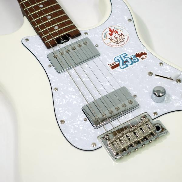 ローステッドメイプルとはメイプルを高温で加熱処理して材の中の水分や油分を揮発させることにより剛性を高めた材。ネックに使用されるとその効果は安定性だけでなくサウンドにも及び、豊かな生鳴りと経年変化したビンテージのようなこなれたトーンを生み出します。高級機種で使われることの多いこの本格派仕様をリーズナブルな価格帯に落とし込んだBacchusの新しい製品ラインナップです。特徴的な外観のローステッドメイプルをネックと指板に採用したモデルです。音色だけでなく、風合いもビンテージのような印象を感じさせます。