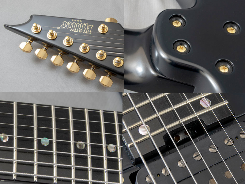 生鳴りも抜群。ネックジョイントは滑らかなヒールカット、そして5点止めのセミ・ディープインサート・ジョイントなのでハイフレットのプレイヤビリティも良好で、ボディと接する面積が増える事で音質がタイトになりました。(ピックアップを外すと上部にもネックを止めているネジがあります)