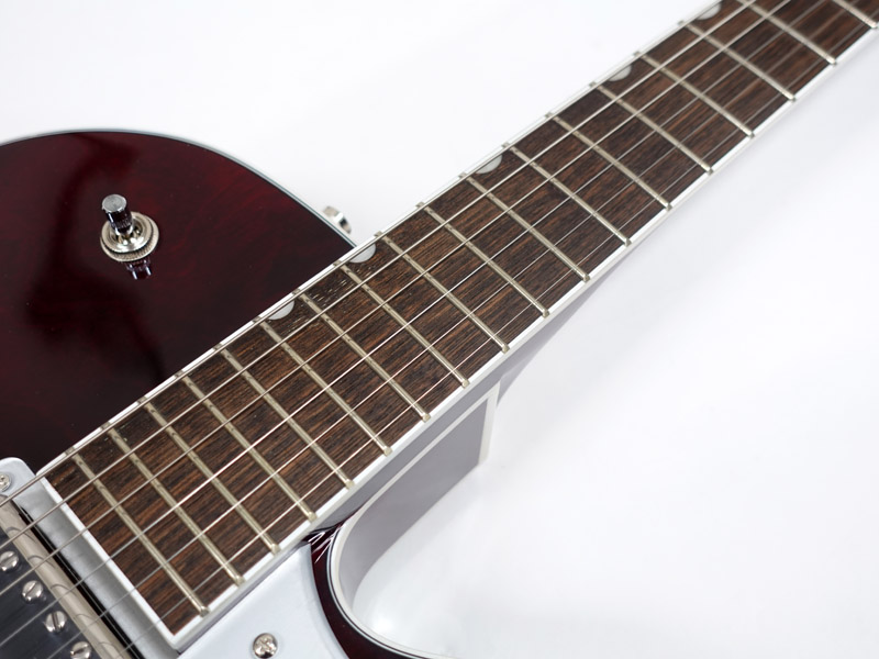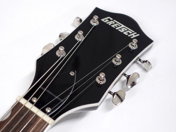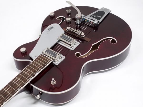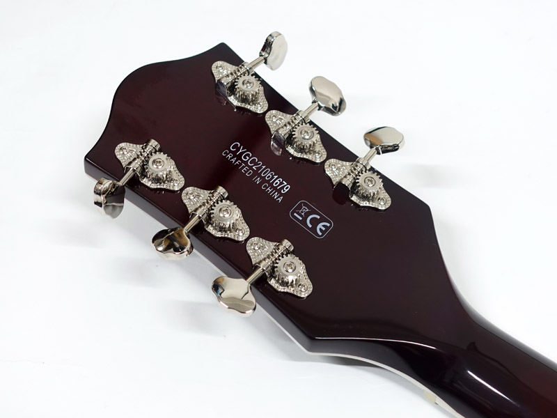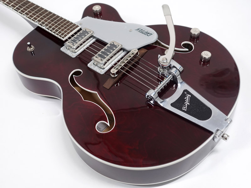 全く新しいクラシック「C」シェイプのメイプルネックは、プレイアビリティとパフォーマンスを向上させ、快適な演奏感をもたらす、12インチラジアスのローレル指板を備えています。 生き生きとした響きを提供するG5420Tは、トレブルブリードサーキットとマスターボリュームを含む、様々なアップグレードを施されたコントロール部を持ち、 マスタートーン、個々のピックアップボリュームコントロールと3ポジションピックアップトグルスイッチ、特大のバウンドFホール、マルチプライボディバインディング、バインディング加工された50年代後半の小ぶりなG6120バウンドヘッドストック、ヴィンテージスタイルのオープンバックチューニングマシン、Graph Tech NuBoneナット、パーロイドのeo-Classicサムネイルインレイ、安定したAdjusto-Maticブリッジ、Bigsby B60ヴィブラートテールピースを備えています。