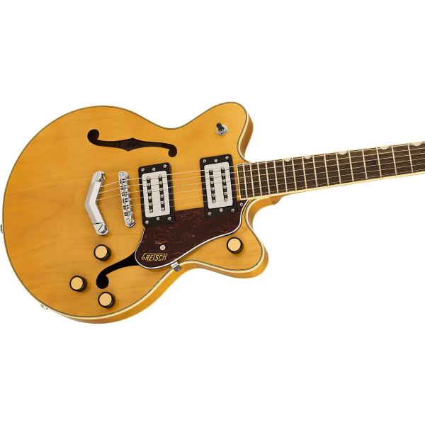 ダブルカッタウェイのアーチドメイプルボディにチェンバードセンターブロックを採用したG2655 Streamliner Center Block Jr. with V-Stoptailは、パーロイドNeo Classicサムネイルインレイと22本のミディアムジャンボフレットをあしらった12インチラジアスローレル指板のSoft "C"シェイプナトーネックを備え、卓越したルックスと共に、快適な演奏性を約束します。
