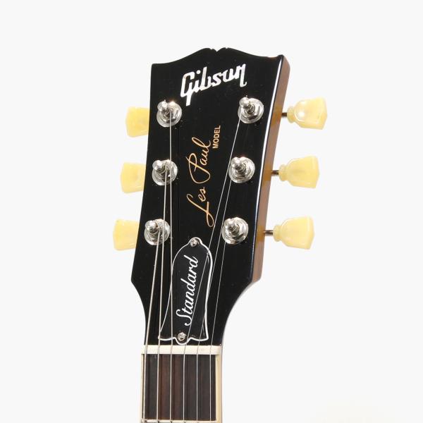 往年のクラシックデザインを踏襲したLes Paul Standard。ノンウエイトリリーフの完全ソリッドボディのマホガニーボディにメイプルトップ、マホガニーネックにローズウッド指板。Vintage 50sの丸みのあるグリップは握り込んで演奏するのに程よい太さです。