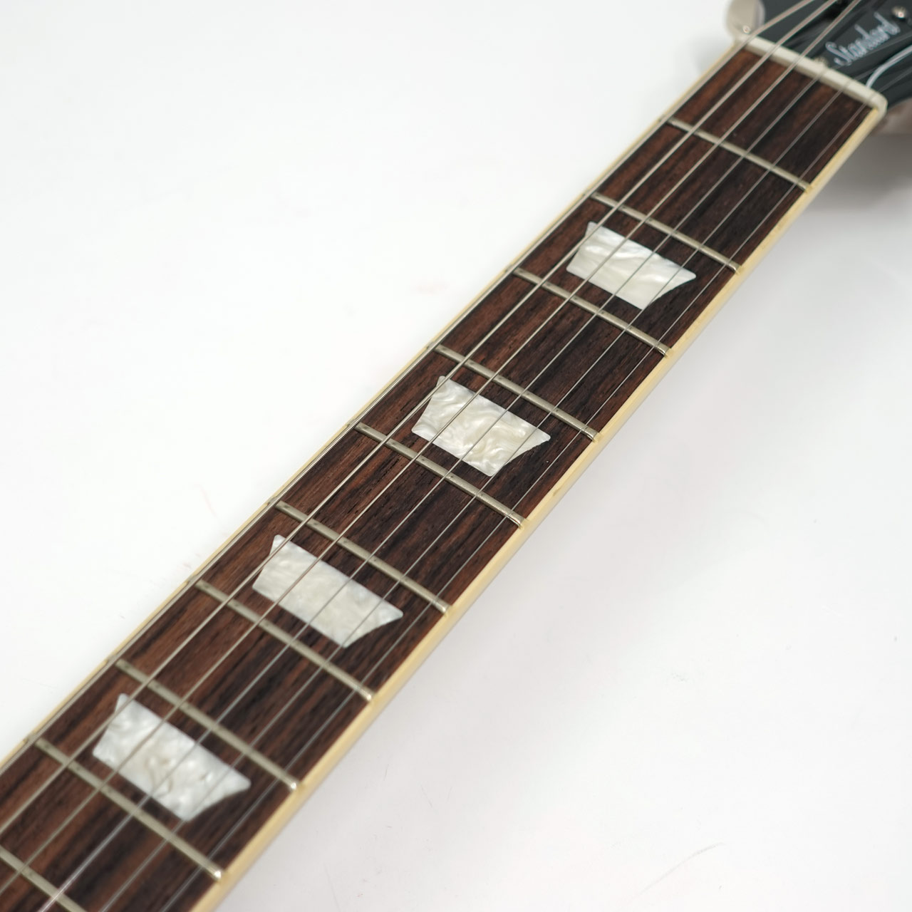 正統派のレスポールスタンダードが復刻。ウエイトリリーフを施さず従来のメイプルトップ&マホガニーバックのボディ。重量感のあるサウンドは破壊力を持ち見事な音圧が魅力。