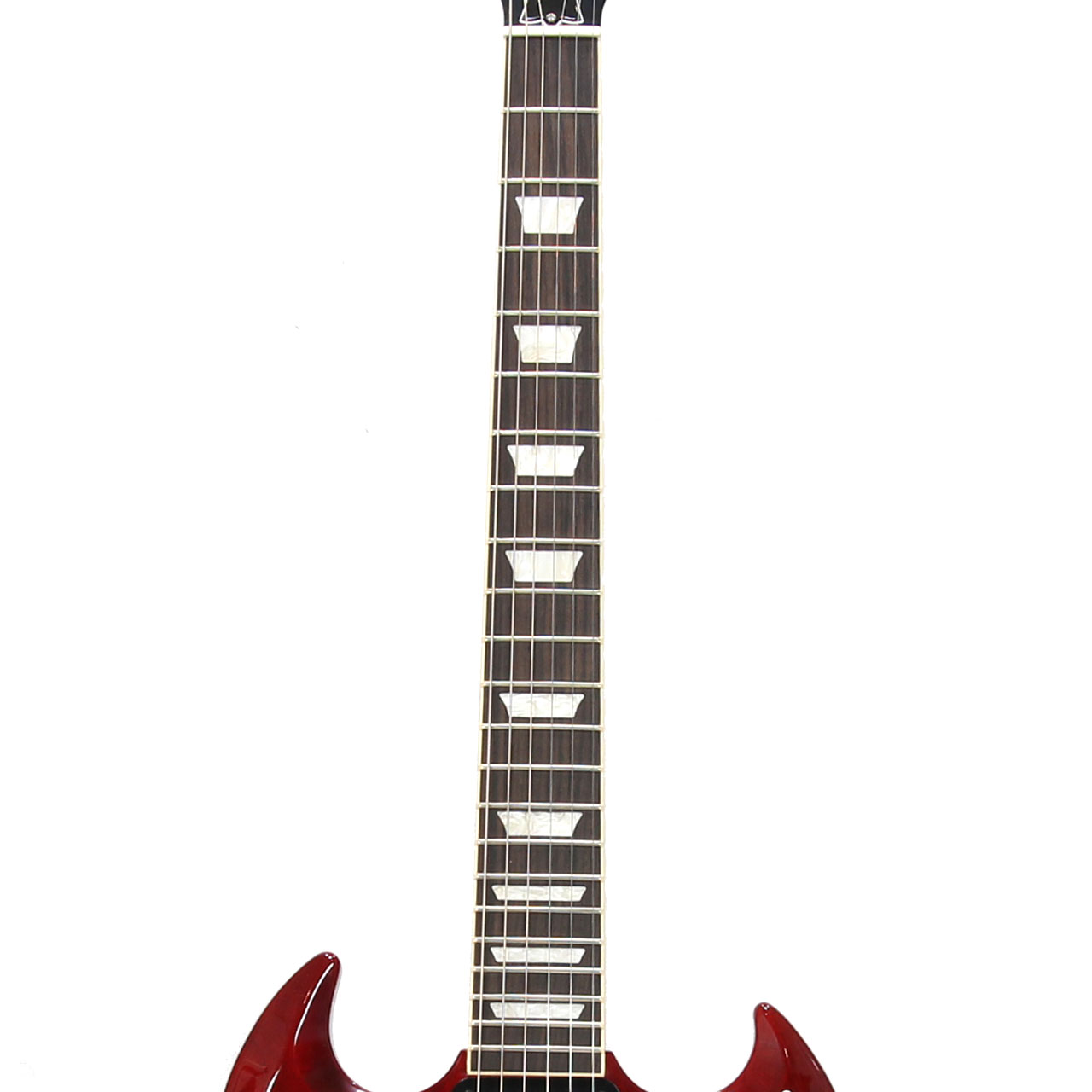 気品漂う豪華なルックスでステージ映えも良く、またボディウエイトが増すためヘッド落ちも軽減され、更にサウンドに低音がプラスされるなど様々な影響があり通常のSGとは一味違った趣。