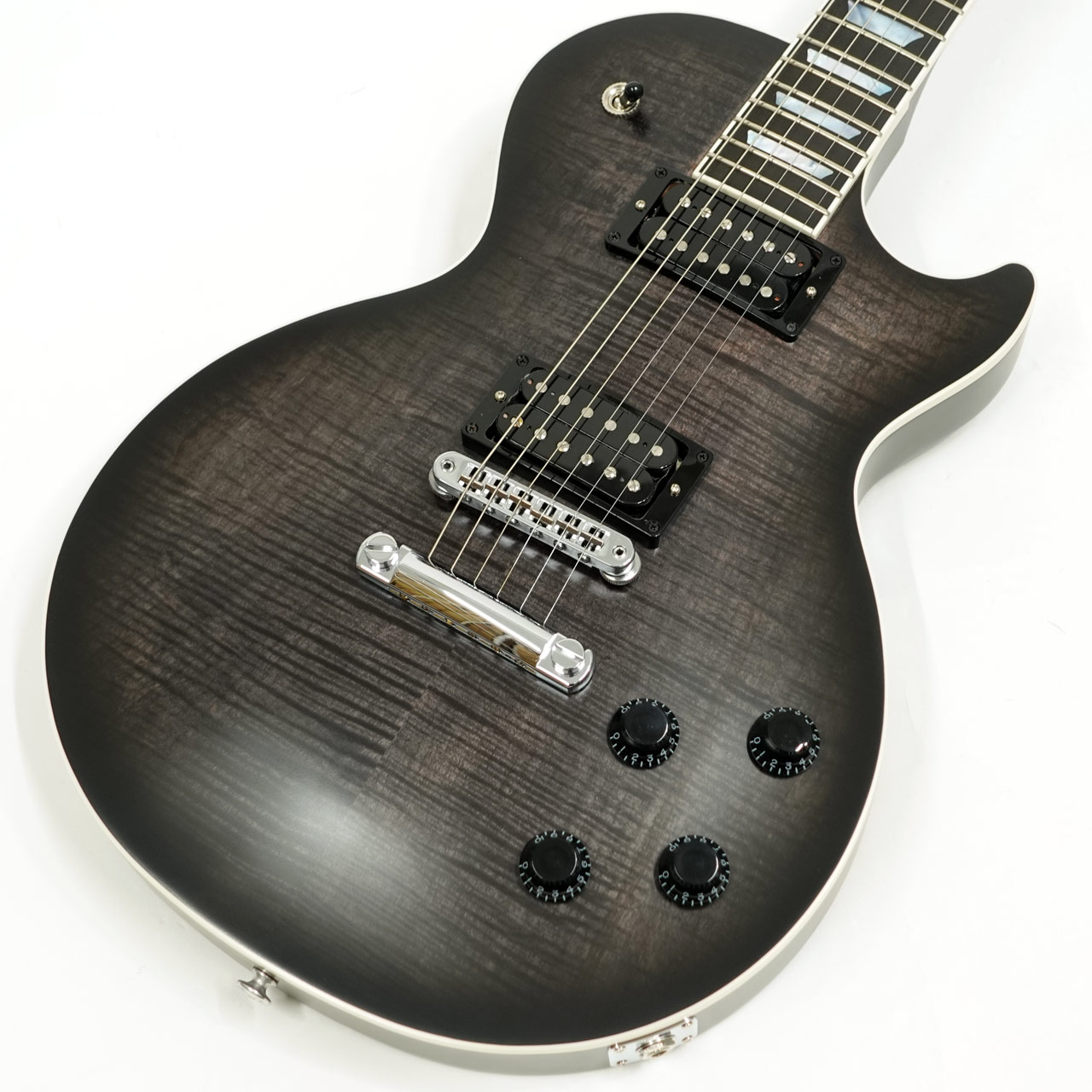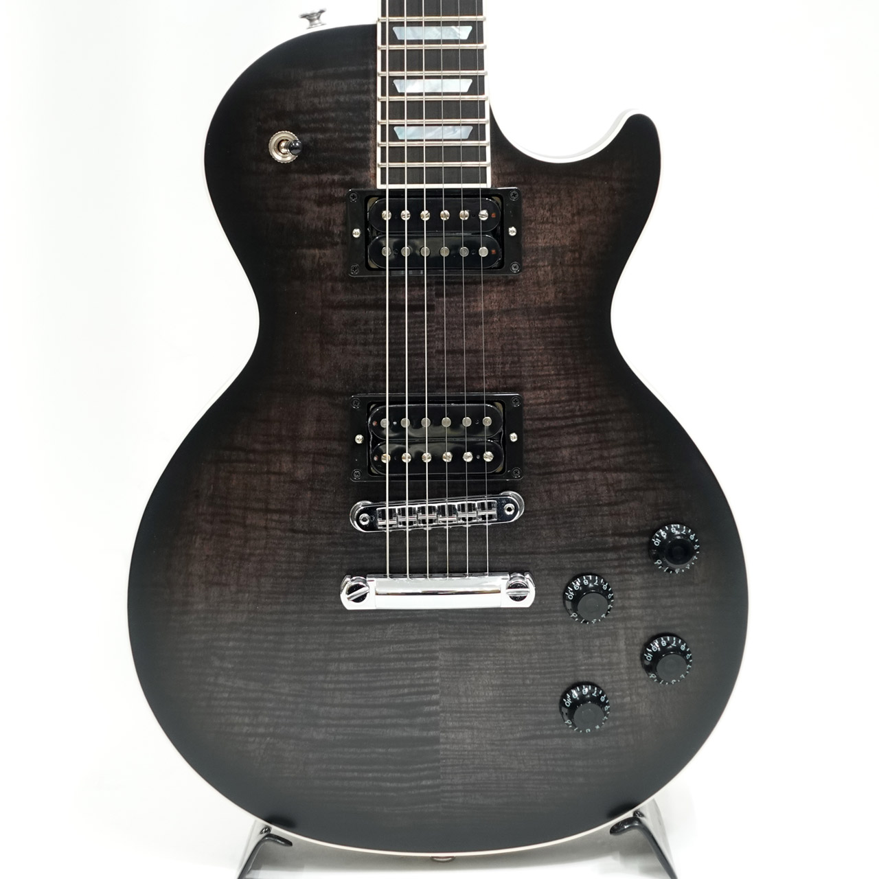 ベースモデルはLes Paul Modern、トップ材にキルテッドメイプルを採用し、シースルーブラックのフィニッシュに合わせたハードウェアを装備したワンオフの激レアスペックを持ちます。