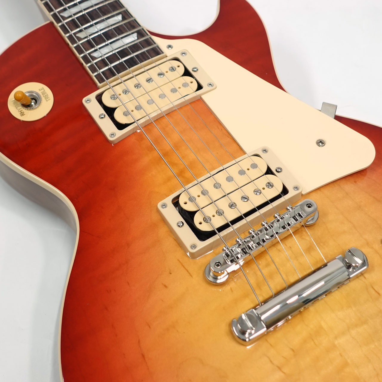 USAラインのLes Paul Standardにノンカバードのダブルクラシック・ホワイトボビンのピックアップを搭載した限定生産モデル!60sのスペックでチェリーサンバーストカラーはレギュラーラインナップに無く、このルックスでスリムなネックが良い方には大変おススメです。