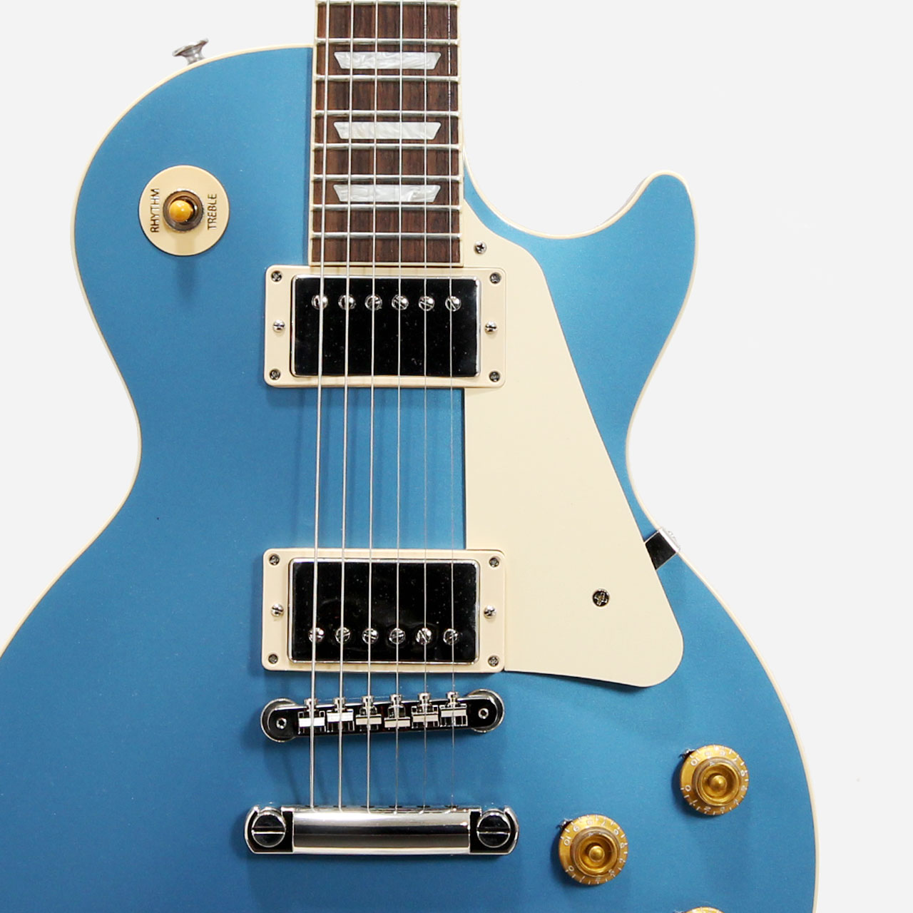 レスポールらしい重量感を持った迫力のあるサウンドでスタンダードな出音を持った1本。人気のペルハムブルーカラーはステージ映えバツグンです!!