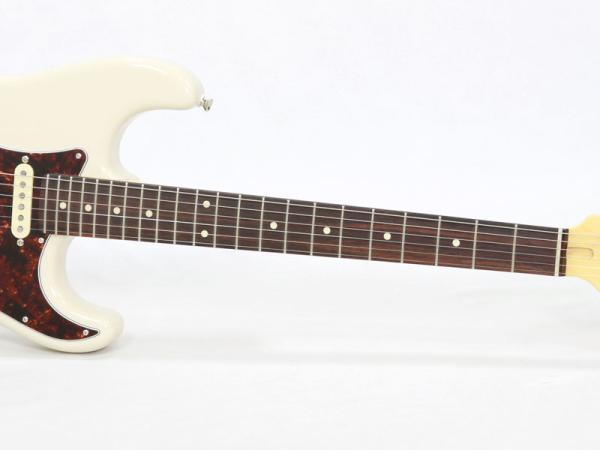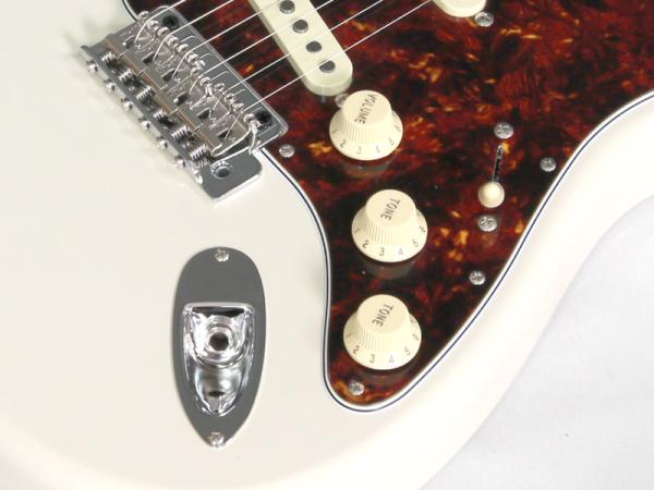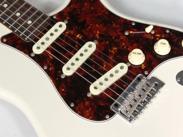 当モデルは、アルダーボディ、ローズウッド指板、3S配列、ヴィンテージホワイトカラーという王道の組み合わせ。