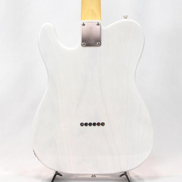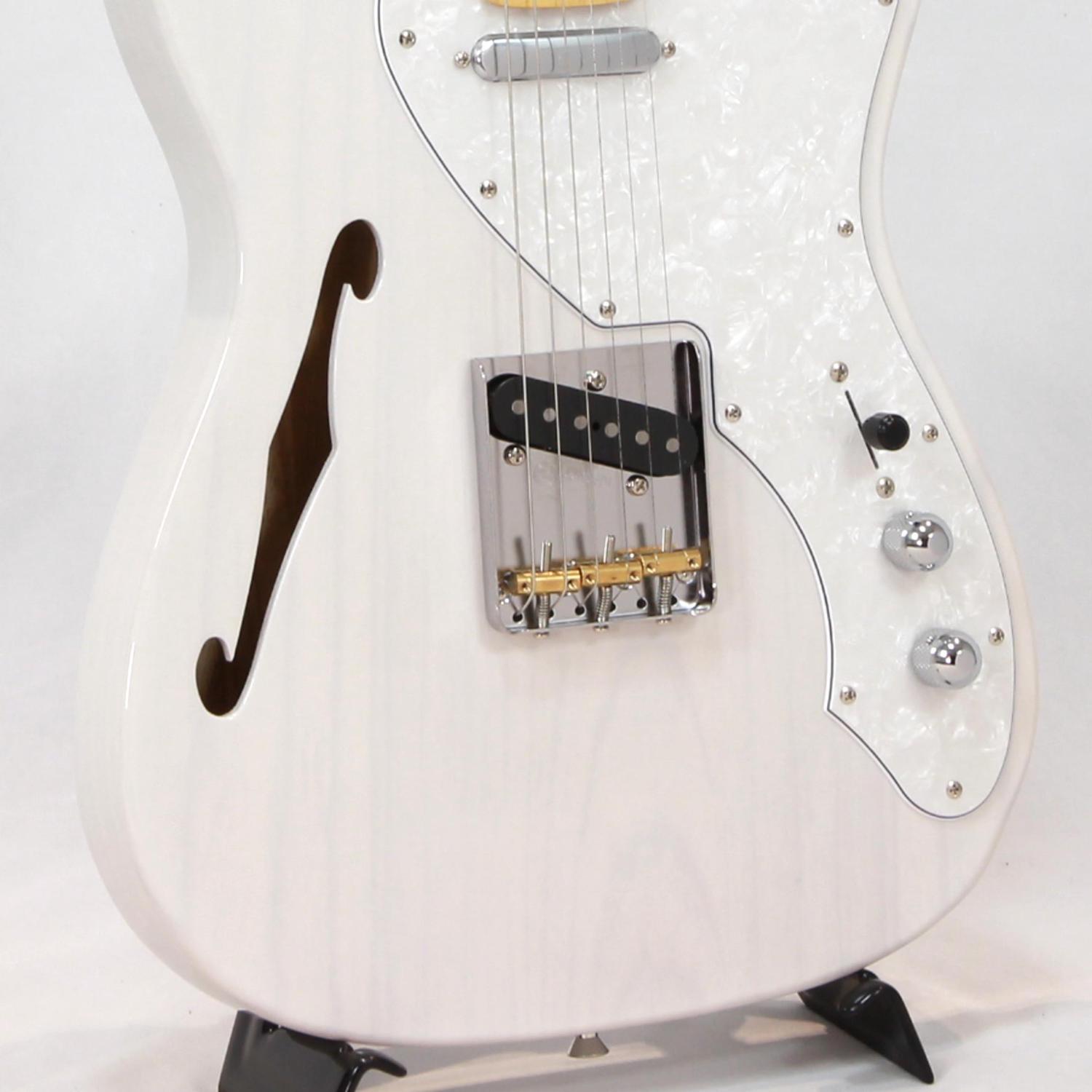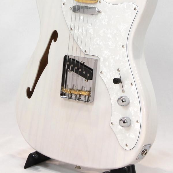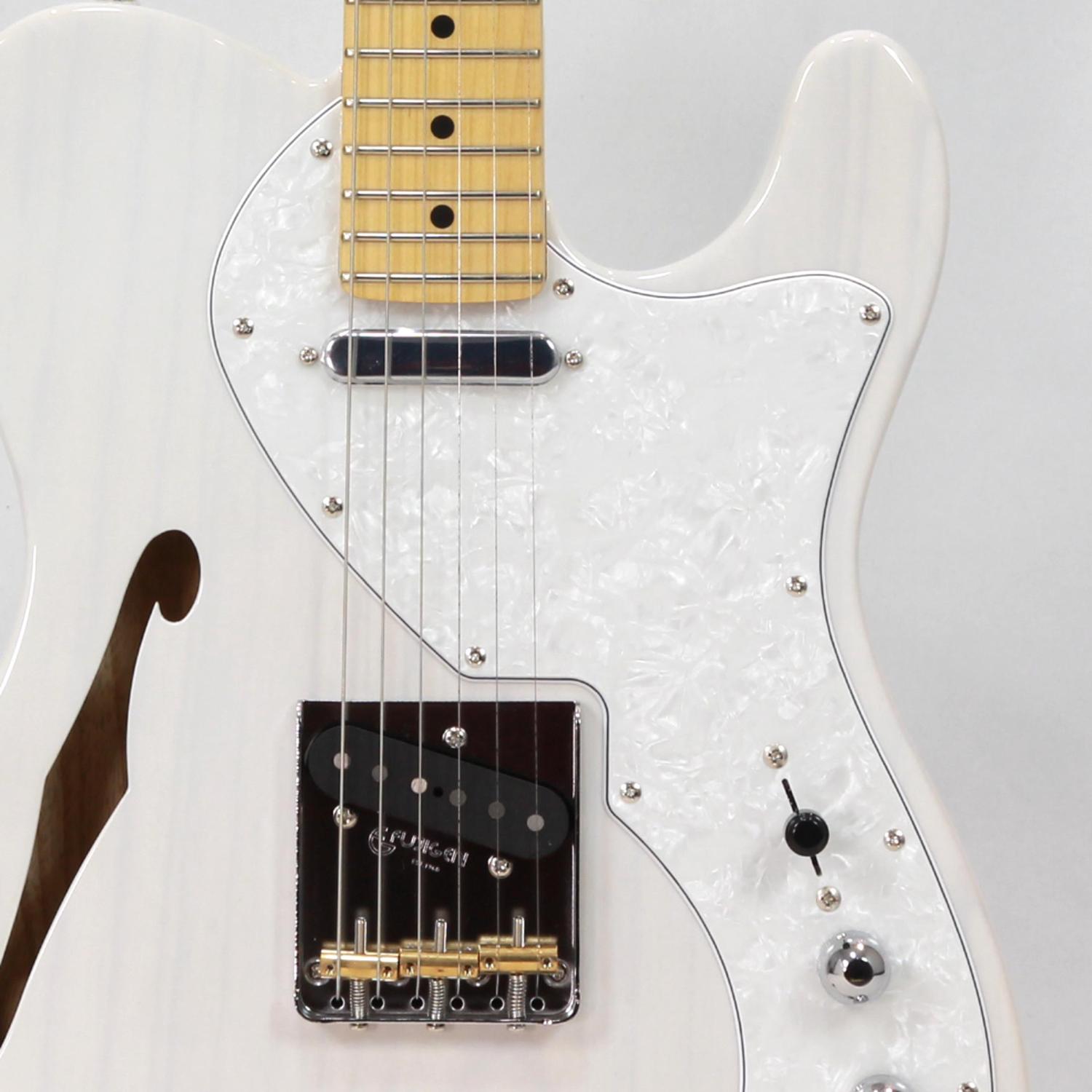 当モデルは、セミホロウ構造のアッシュボディ、メイプル指板、ホワイトブロンドカラーという組み合わせ。セミホロウタイプは通常より軽量かつ生鳴りも豊かで、最近人気です。