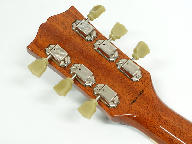 メイプルトップ、マホガニーバックのレスポール王道のボディスペック。重圧なサウンドに切れ味を持ち合わせジャンルにこだわらずロックサウンドを作り出します。