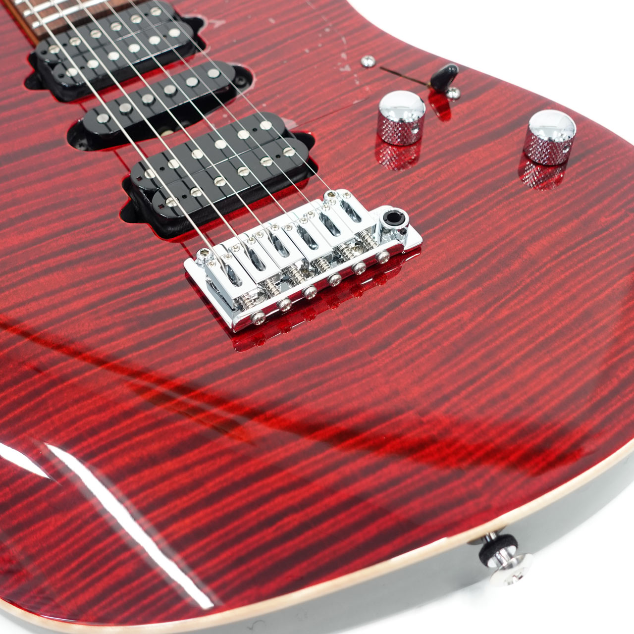 H-S-Hのピックアップ配列によってあらゆるジャンルをカバーでき、プッシュ / プルスイッチによる両ハムバッカーのコイルタップコントロールも可能。