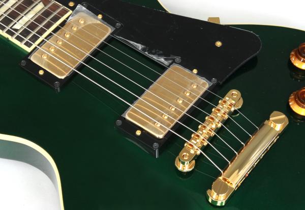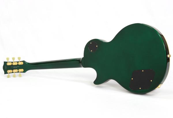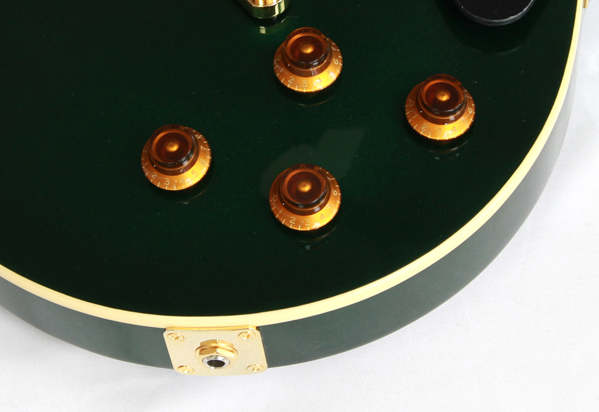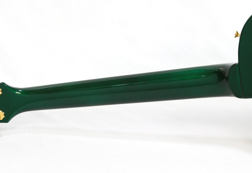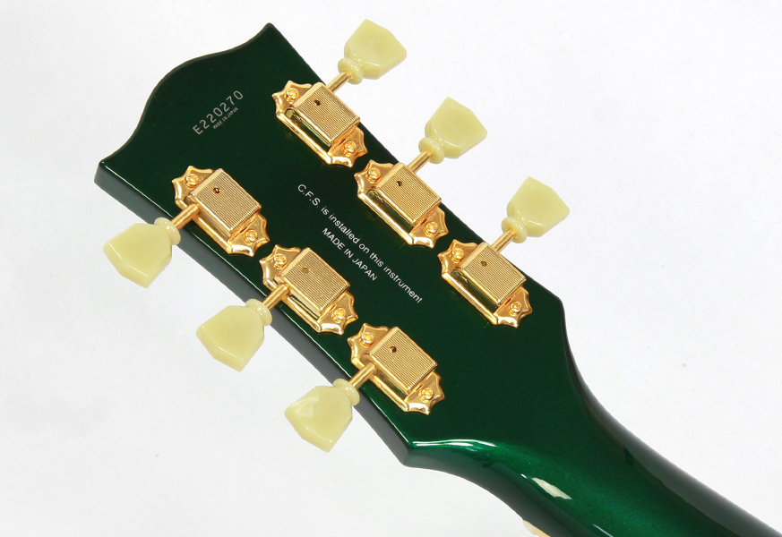 当モデルは、メイプルトップ・マホガニーバックボディ、ローズウッド指板、キャンディアップルグリーンカラーという組み合わせ。