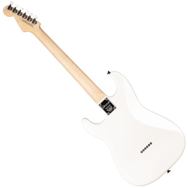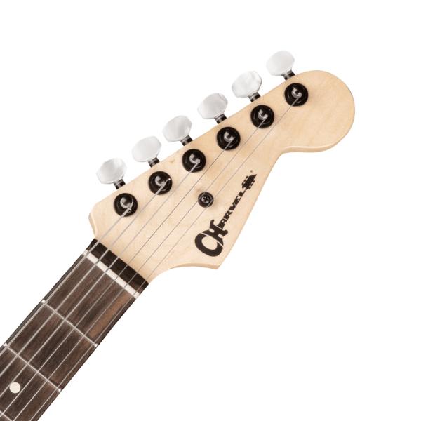 リアにパワフルな低音と煌めく高音をもたらすSeymour Duncan JB SH-4 ハムバッカーピックアップ、センターとフロントにはパンチと暖かみを与え、より深淵なボトムエンドをもたらすDiMarzio SDS-1シングルコイルピックアップを搭載しました。他にも、5ウェイブレードスイッチ、Strat®スタイルのボリュームコントロールノブ1基、ブラックのプレート付ハードテールブリッジ、パールボタン付きCharvel製チューニングマシンを採用し、高い汎用性を誇ります。