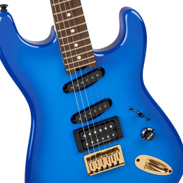 80年代にジェイク・E・リーが使用した有名なブルーバーストモデルのトリビュートであるこの人気モデルは、万能なSeymour Duncan JBハムバッカーブリッジピックアップを搭載し、甘く温かみのあるクリーントーンからアグレッシブなハイゲイントーンまで幅広く対応します。さらに、ミドルとネックには、深みのあるダークなトーンが特徴的なパワフルなDiMarzio SDS-1シングルコイルピックアップを搭載しています。ピックアップは5ウェイブレードスイッチとシングルボリュームで操作でき、直感的に多彩なサウンドメイキングが可能です。