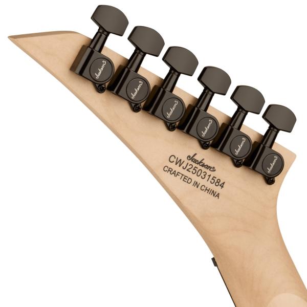 24フレット仕様やシャークスフィン・インレイ、大きめのジャクソンロゴなど、ジャクソンらしさ全開のルックスです。