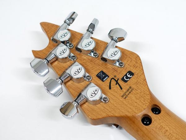 EVHブランドのFloyd RoseスペシャルブリッジとR2ロッキングナットは、激しいアーミングを行なっても一貫してチューニングを維持します。