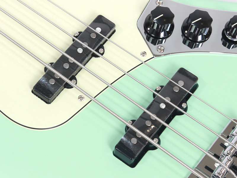 サイズに合わせた新設計のピックアップ、バスウッドボディなどジャズベースの魅力が味わえるスペック。