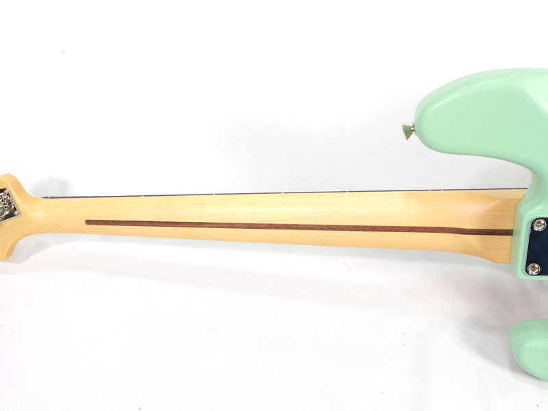 9.5Rの指板、ナロートールのフレット、サテン仕上げのネック、ヘッド側から出来るトラスロッド調整など今時のフェンダーのプレイヤビリティを採用しています。