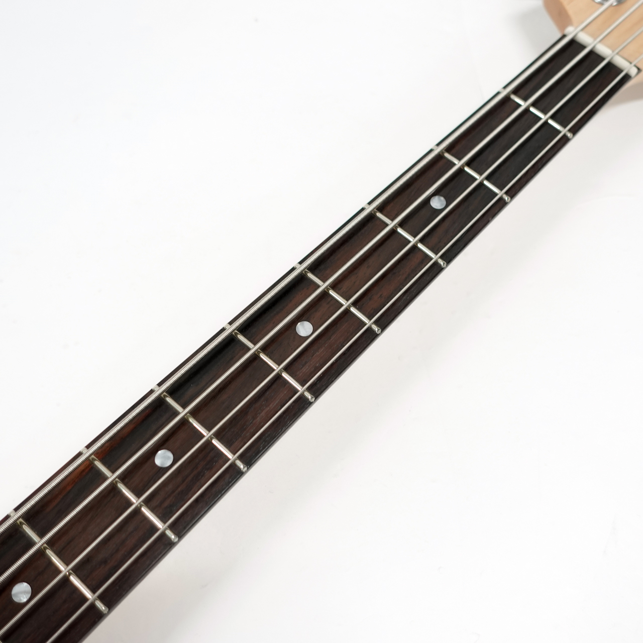 ポプラボディにメイプルネック、ローズウッド指板。ロングスケールに21フレット。
