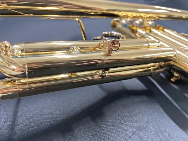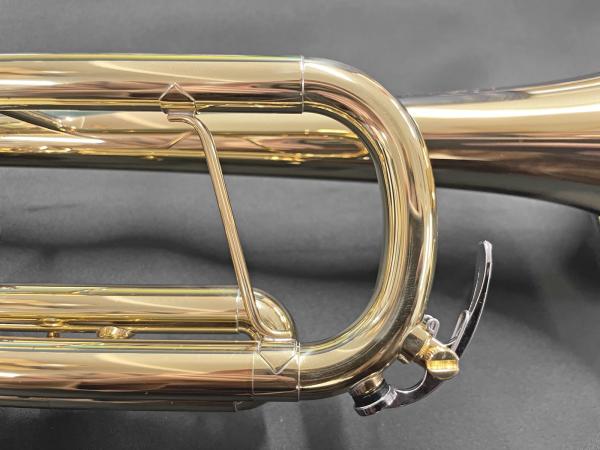 支柱は音色や響きに重量感を加えるために立てられているパーツです。この本数で楽器を吹いたときの感触が変わります。YTR-8330EMは支柱は1本です。通常支柱はまっすぐ設置されていますがより最適な吹奏感を得るために、支柱の位置を見直しデザインも少し変わっています。独自形状の支柱は通常の支柱よりも少ない抵抗感を持ち吹奏感と抵抗感の変化を最小限に抑え響きを整えてくれます。