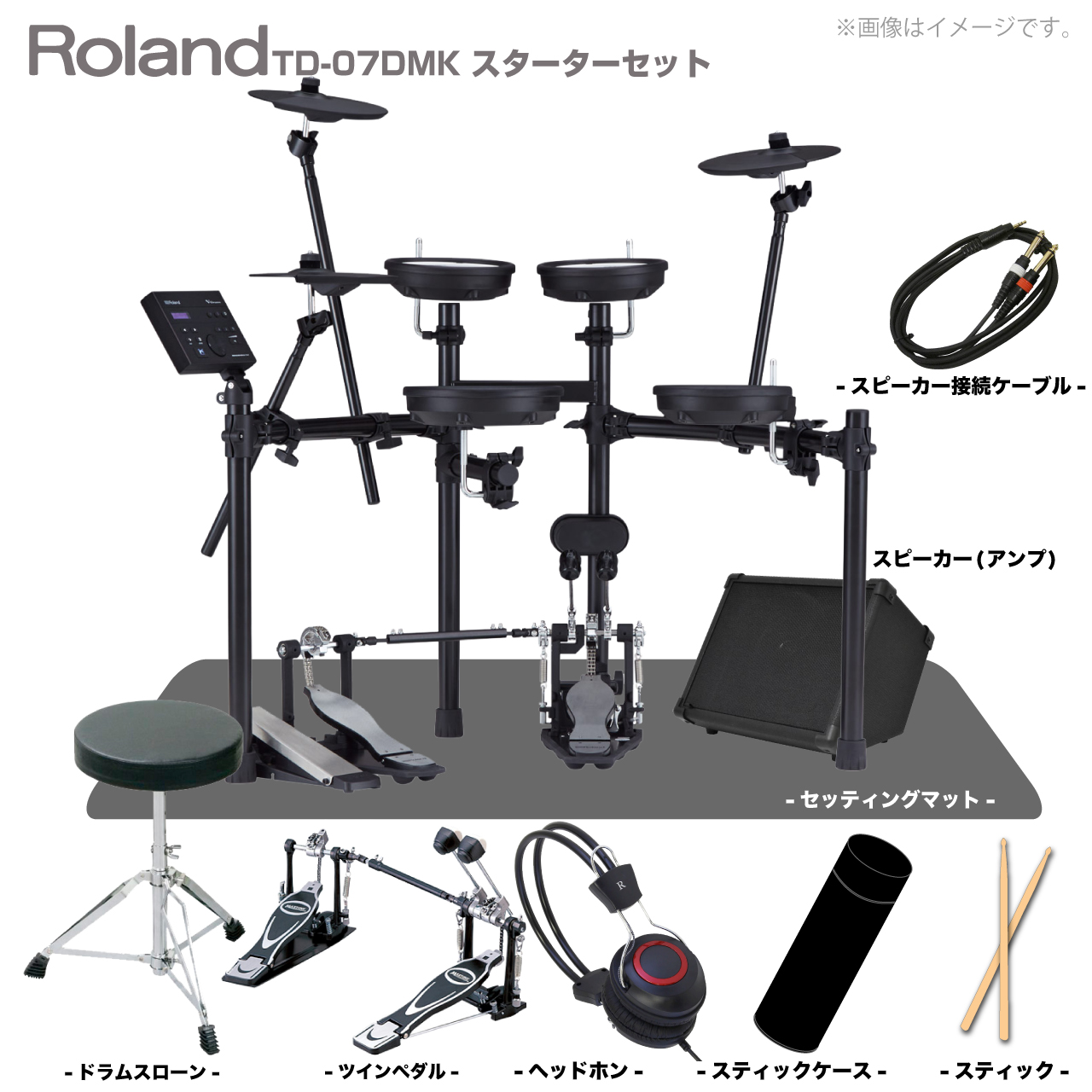 Roland ローランド TD-07DMK スターターセット ツインペダル + マット + アンプ