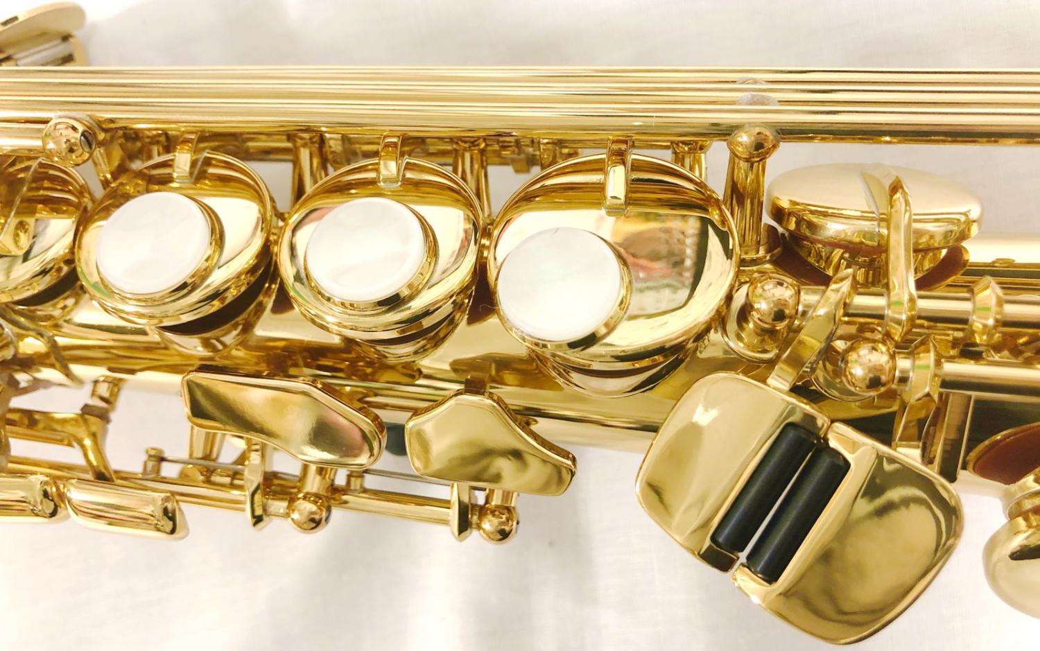 一体型のストレートネックやコンパクトにデザインされた小指キイで誰にでも扱いやすい低価格ながら高い品質を兼ね備えたモデル。サックスには種類があり、一番定番のものが「アルト」になります。アルトサックスとソプラノサックスの違いは簡潔に言ってしまうと「サイズ」「調子(音域)」「音色」でしょうか。ソプラノ方が小さく、アルトより高音になり、出る音の音域が変わります。運指はほぼ同じですが、サイズが違うことで調子が異なりますので、「同じドの運指」で音を出したら、アルトはピアノで言う「ミ♭」、ソプラノは「シ♭」が出ます。曲によって持ち替えてどちらも演奏する方もおられますが、口にあたるマウスピースのサイズ、楽器の本体のサイズが若干違いますので、吹奏感はかわります。