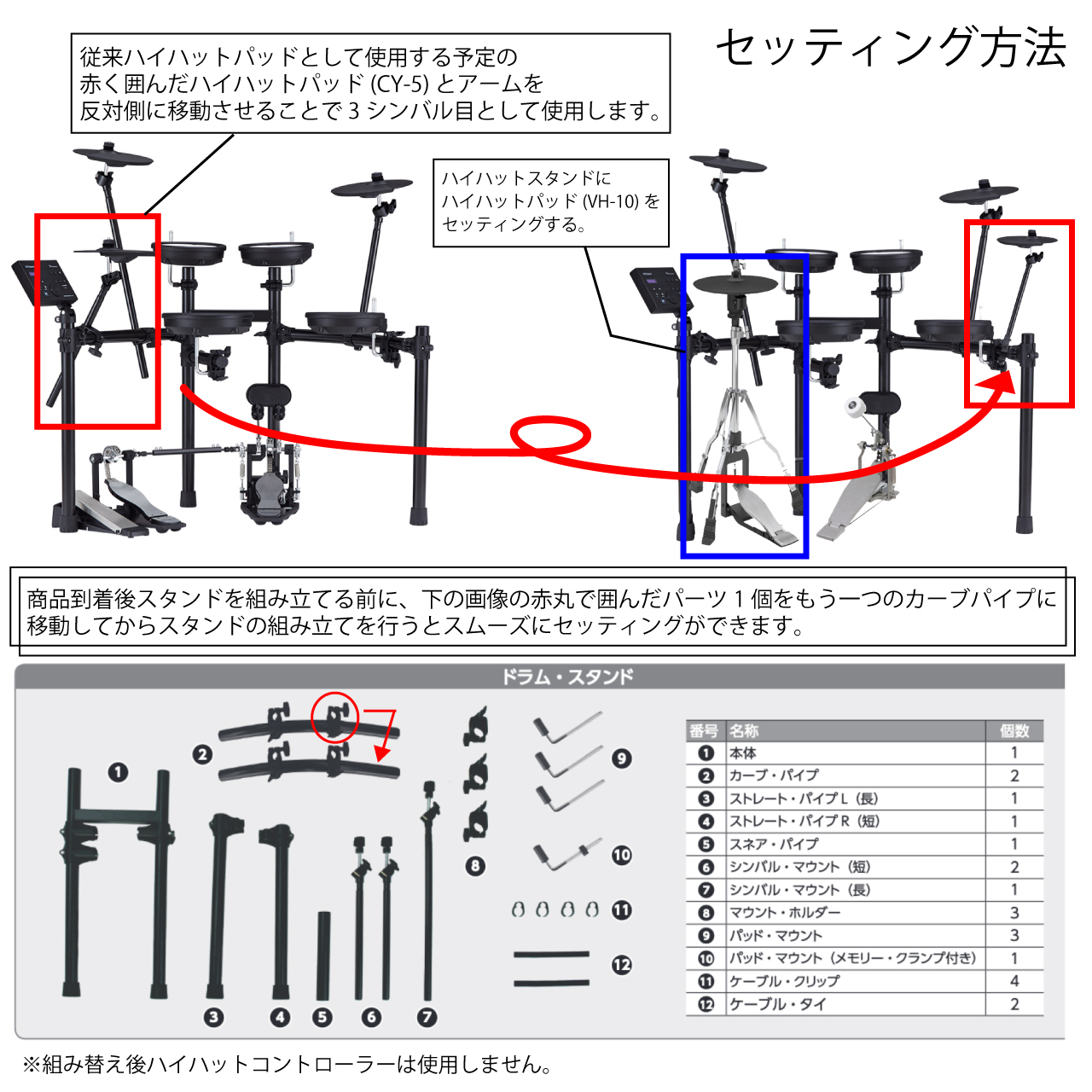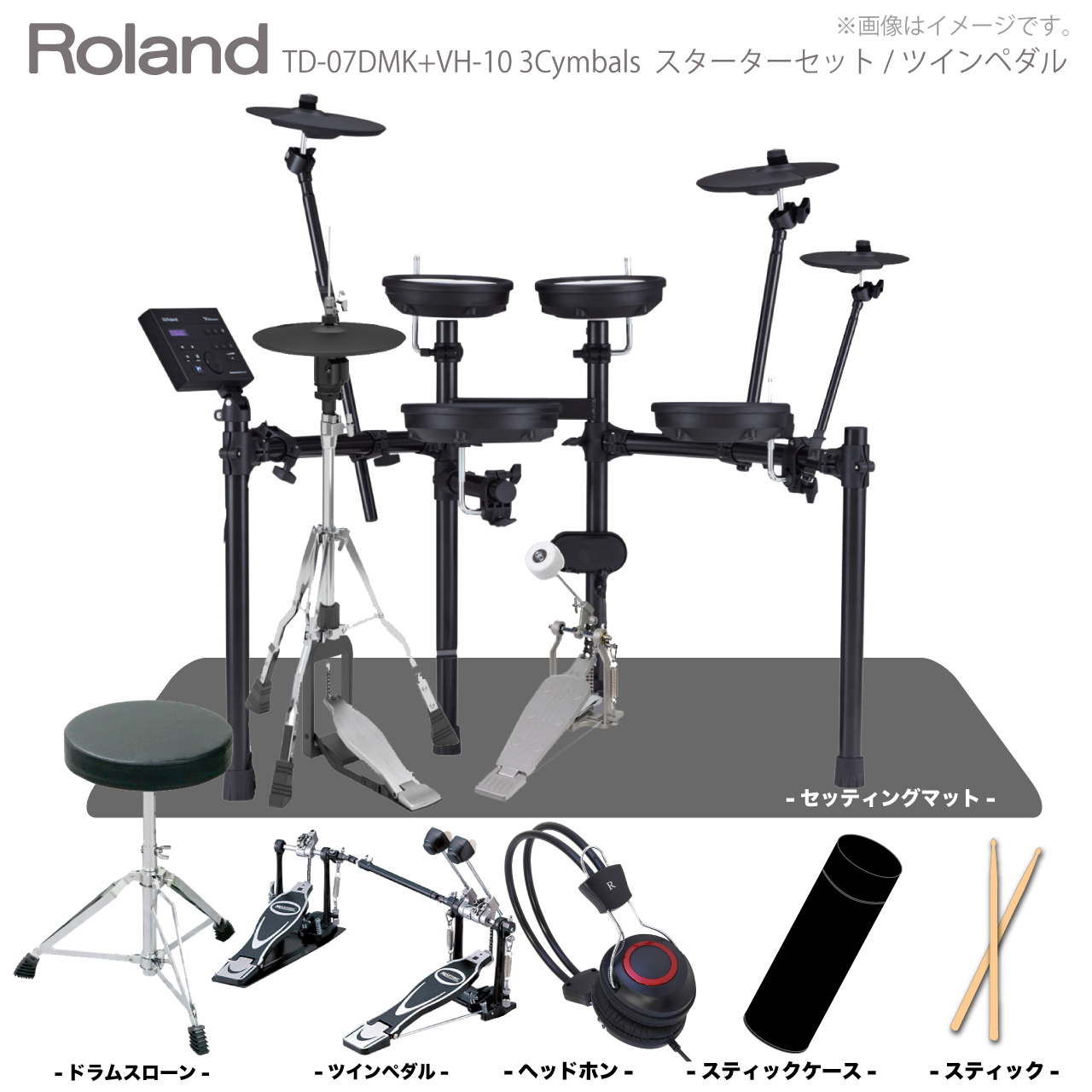 Roland ローランド 即納可能 TD-07DMK VH-10 3シンバル スターターセット ツインペダル + マットTD-07KDMKにVH-10を追加。