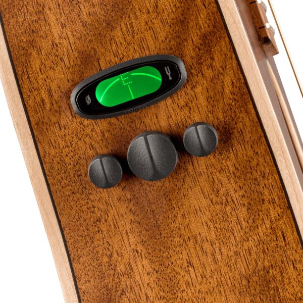 フィッシュマンのエレクトロニクス搭載で宅録からストリートまで使えるうれしいエレアコ仕様。チューナー搭載なので普段の練習にも重宝します。