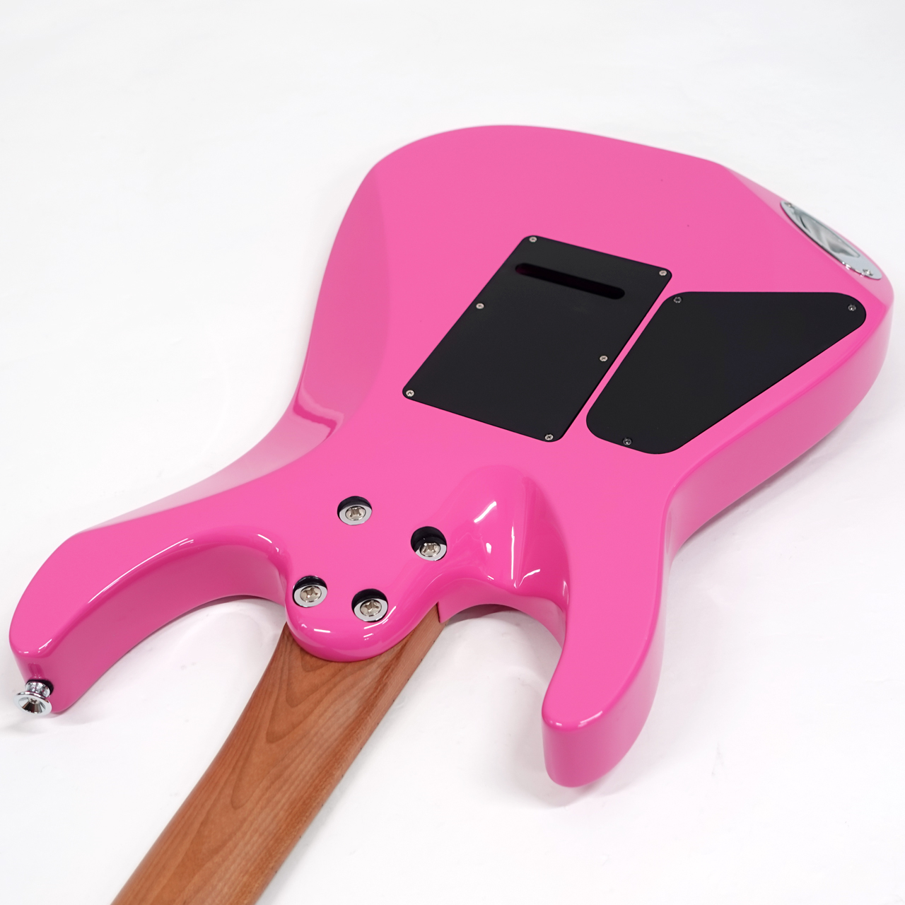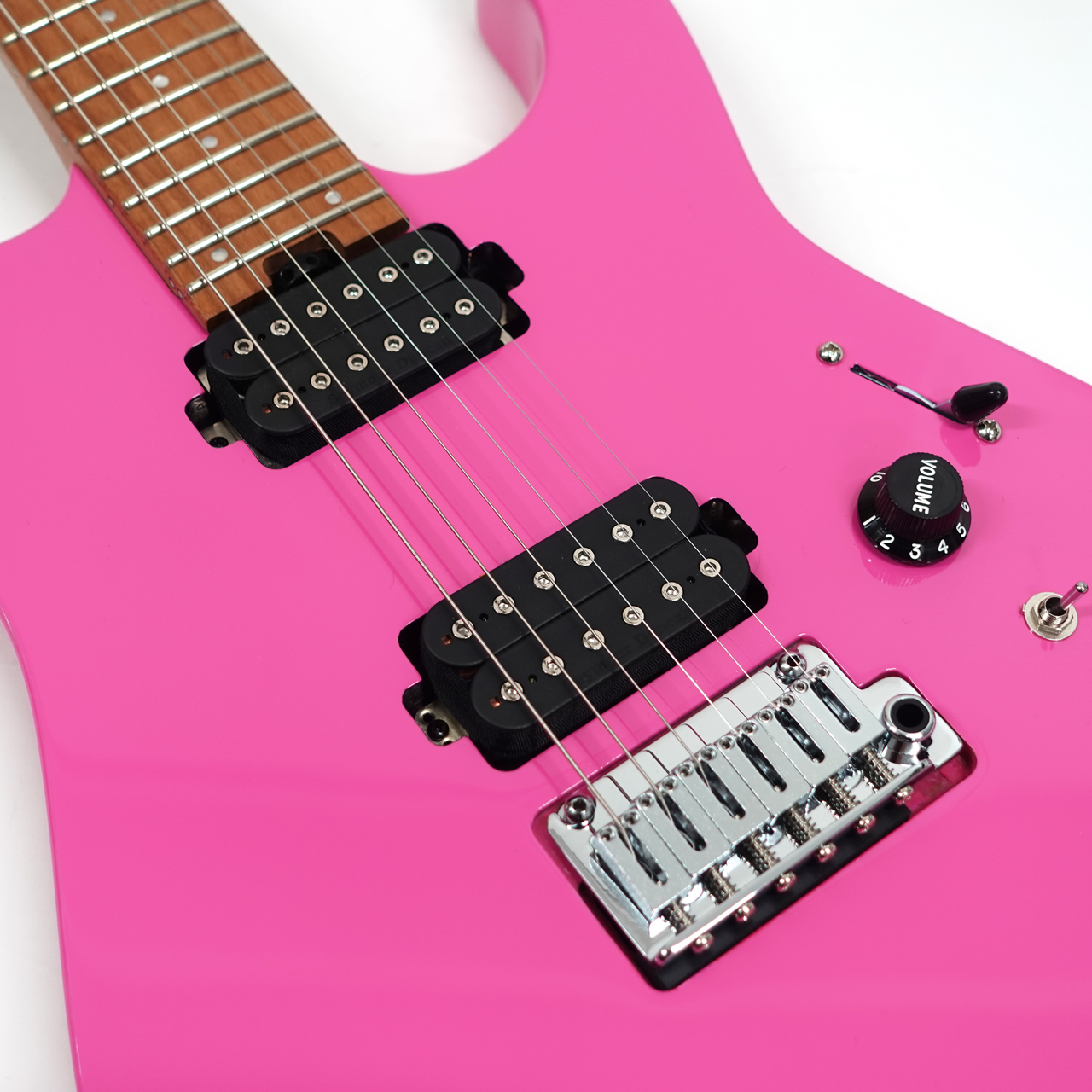 ステージで視線を独り占めにできるBubblegum Pink 仕上げのアルダー材のDinkyボディに、高音域へのアクセスを容易にするスキャロップドロウワーバックバウトとシュレッダーズカットヒールが特徴です。