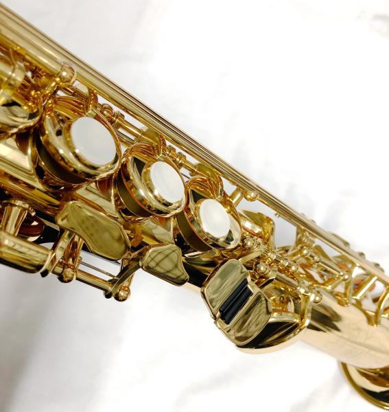 *ネック一体型...本体とネックが取れない。シンプルな構造で抵抗感が少ないです。 *ダークラッカー...ヴィンテージを意識した深い飴色の塗装面は通常のラッカーよりも厚めに仕上がっており、その分吹きごたえのある吹奏感です