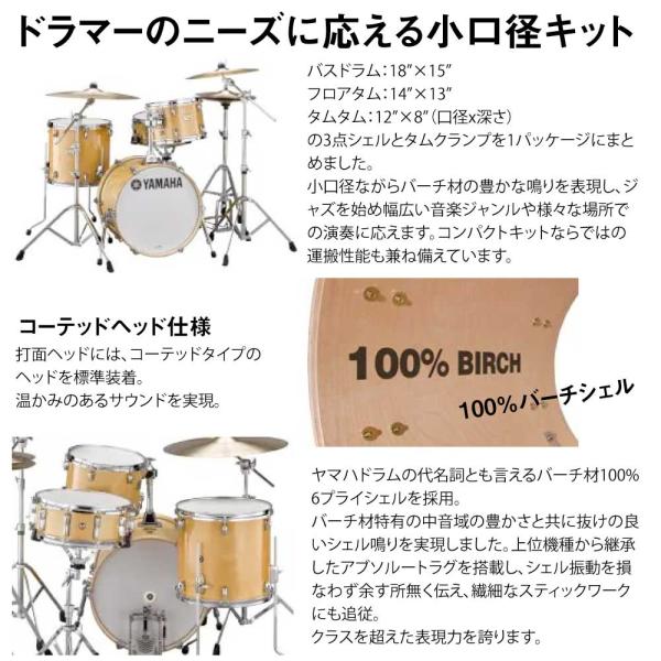 YAMAHA ヤマハ Stage Custom Birch Bop Kit NW DSBP8F3CLW シェルセットヤマハドラムの代名詞とも言えるバーチシェル100%を使用したステージカスタムバーチの小口径バリエーションキット。