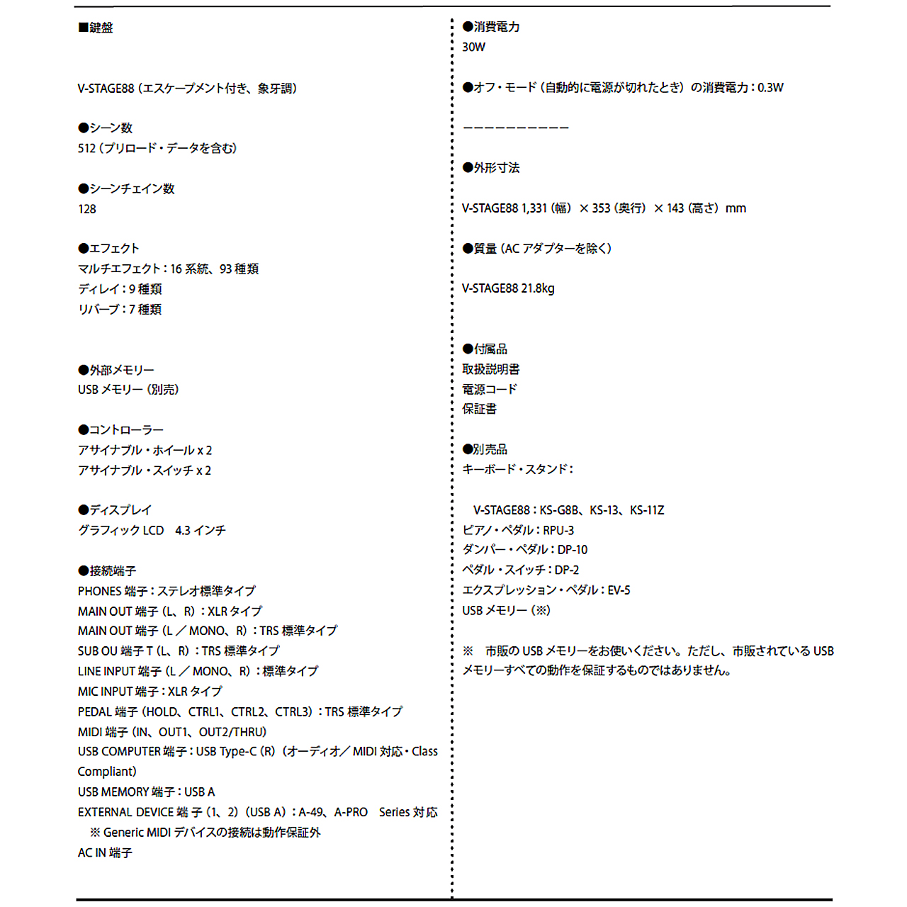 Roland ローランド V-STAGE88 純正アクセサリー付きセット 88鍵 ピアノ オルガン シンセサイザー