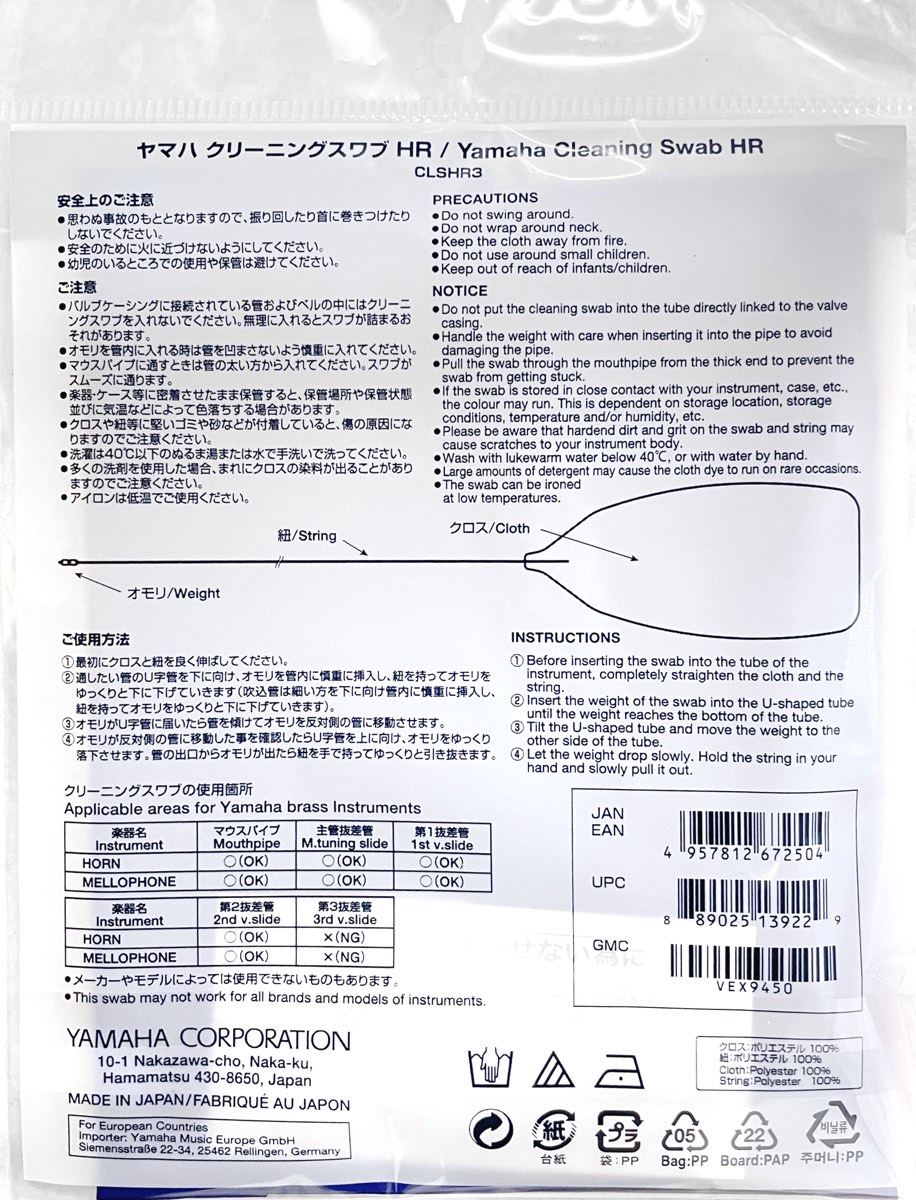 YAMAHA ヤマハ CLSHR3 クリーニングスワブ HR3 フレンチホルン SG4 スライドグリス お手入れ用品 北海道 沖縄 離島不可