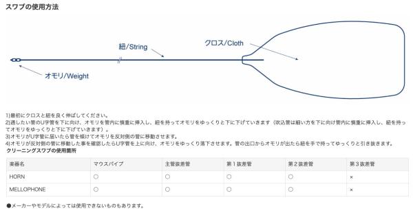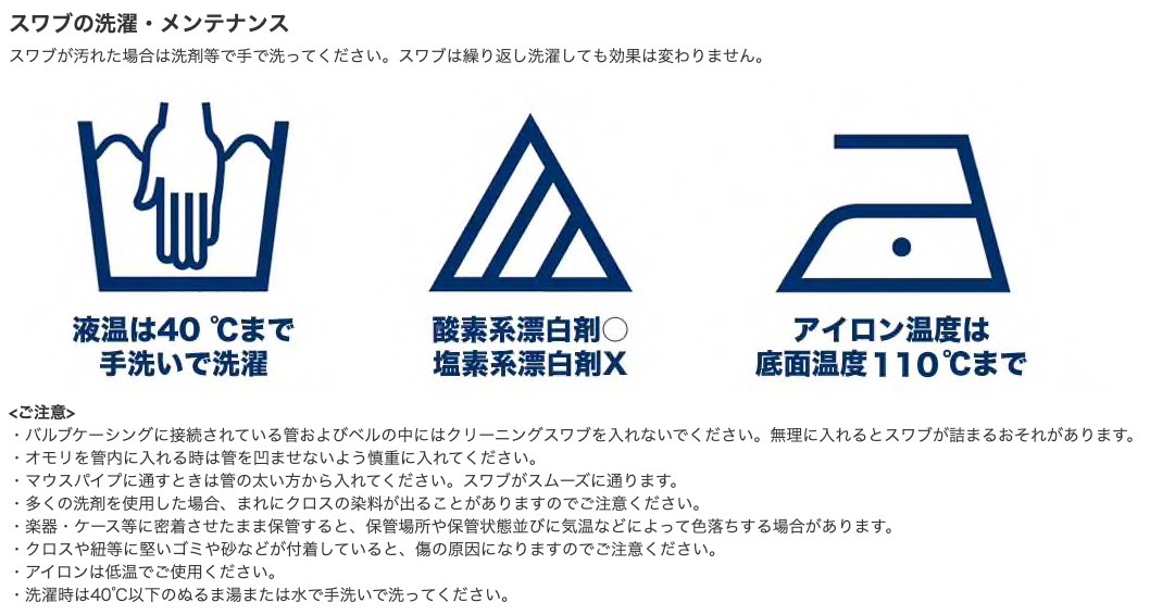 スワブ用に独自に開発したマイクロファイバーは吸水性抜群で、とてもしなやかです。汚れとりにも優れた効果を発揮します。布地は通しやすさと吸水効果を追求し、楽器の特性に合わせたカットを施しました。