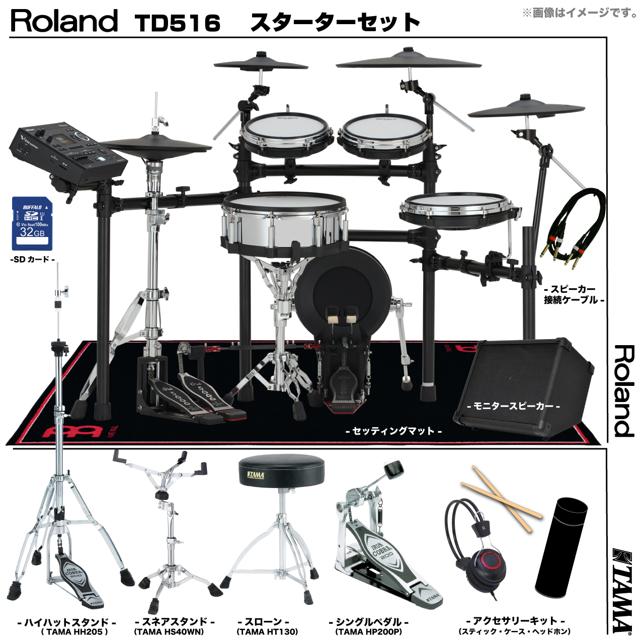 Roland ローランド 即納可能 TD516 TAMA シングルペダル アンプ付き セット電子ドラム エレドラ TD-516